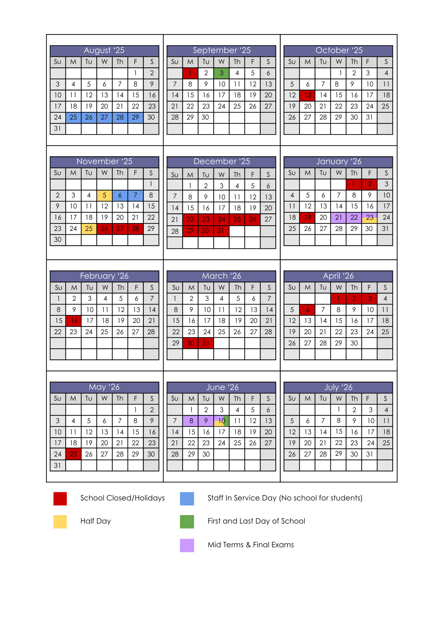 Calendar 2025-2026